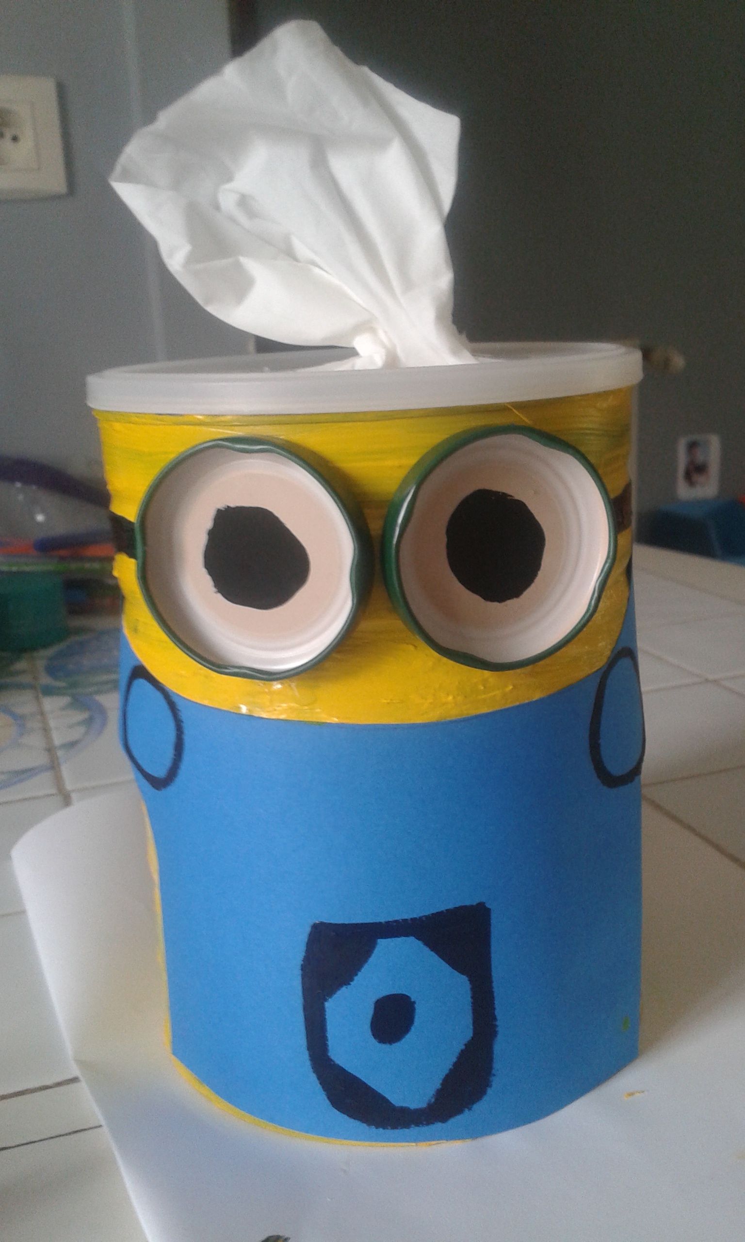 Voici notre boîte à mouchoir minion , chaque enfants a participé , nounou a fait les finitions .